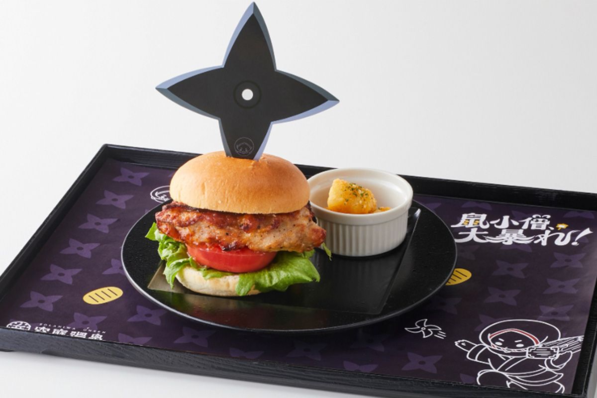 【空庭温泉 OSAKA BAY TOWER】鼠小僧がメニューでも大暴れ!遊び心満載のコラボメニュー登場。手裏剣バーガーやカラフルドリンクなど全3種がラインアップ